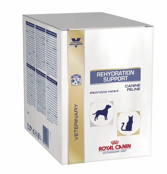 REHYDRATION SUPPORT ELECTROLYTE INSTANT is a complementary food for dogs and cats for the support of intestinal absorptive disorders. This food contains an increased level of electrolytes and highly digestible ingredients. Electrolyte Balance Rehydration Support Instant Diet formula has been designed to replace lost fluids and electrolytes in dehydrated dogs and cats. Sodium and chloride contents are approximately equivalent and compensate for losses