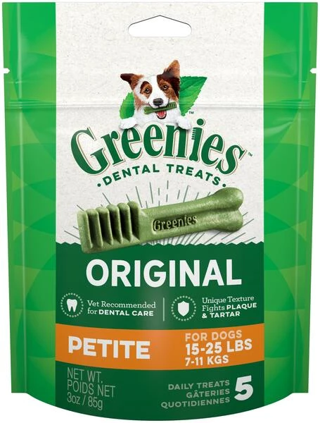 Give your portly pal the mouth-wowing treat that boosts dental health with Greenies Weight Management Regular Dental Dog Treats! These veterinarian-recommended treats are low in fat and calories, making them perfect for your heavyset pooch. Formulated with all-natural ingredients, these goodies are designed to control and remove disease-causing plaque and tartar, all while putting an end to dreaded doggie breath. Keep the cuddles coming and give your best friend the dental health he deserves with these complete and balanced dental treats.
