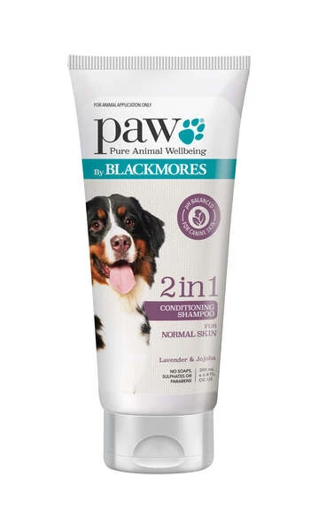 PAW 2 in 1 Conditioning Shampoo effectively cleans and conditions the coat and skin for convenient grooming care. With sulphate-free cleansers and rich conditioning ingredients it gently cleans and conditions in one simple step. Formulated for all adult dogs, PAW 2 in 1 Conditioning Shampoo is pH balanced for adult dogs with healthy skin, using pawDerm technology that combines: With hypoallergenic sulphate free gentle cleaners for a gentle clean without irritating or stripping natural oils from the skin. With rich moisturising & nourishing conditioners to soften, detangle & enrich the coat & skin. Natural essential oils of lavender & jojoba to provide nutrients and a fresh pure scent to the skin and coat Ingredients Purified water, surfactants. thickener, glycerin (vegetable), preservatives, salt (dairy), panthenol, sodium hydroxide, jojoba oil, tetrasodium EDTA, tocopherol, lavender oil.