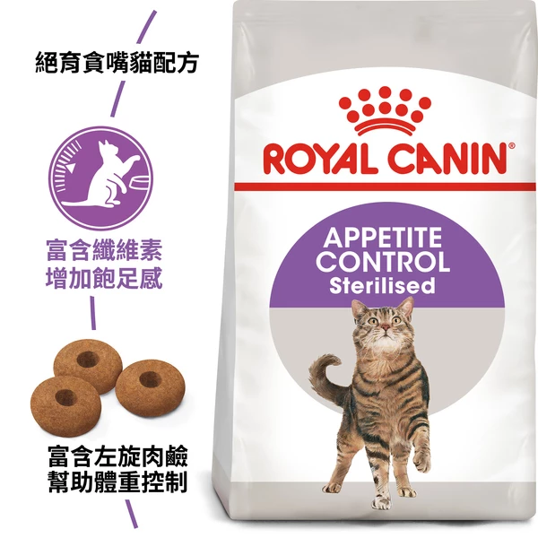 ROYAL CANIN Indoor Appetite Control is specially formulated with all the nutritional needs of your indoor cat in mind. If your indoor cat has a tendency to overeat, then it's important that its diet contains nutrients that help to control its food intake. ROYAL CANIN Indoor Appetite Control helps indoor cats to regulate their appetite in a natural way, thanks to a balanced content of protein and fibres. The inclusion of highly digestible protein in ROYAL CANIN Indoor Appetite Control helps to reduce not only the quantity of your cat's stools, but also the odour. Thanks to the inclusion of specific fibres, including psyllium, ROYAL CANIN Indoor Appetite Control also helps to naturally stimulate intestinal transit, meaning that the occurrence of hairballs is significantly reduced. ROYAL CANIN Indoor Appetite Control also helps to support and maintain the health of your adult indoor cat's urinary system. Variations of ROYAL CANIN Indoor dry food are also available, depending on your cat's lifestyle, appearance, and age: · Indoor 27 · Indoor Long Hair · Indoor 7+ Overeating control Indoor cats have a more sedentary lifestyle and may tend to overeat. Indoor Appetite Control helps indoor cats regulate their appetite in a natural way thanks to a balanced content of protein and fibre, which contributes to maintaining ideal weight. Stool odour reduction A lack of exercise may lead to a slower intestinal transit and smelly stools. Indoor Appetite Control contains highly digestible protein (L.I.P.*) and helps reduce the quantity and odour of stools. *L.I.P.: protein selected for its very high digestibility. Hairball reduction Indoor Appetite Control helps stimulate intestinal transit and the elimination of ingested hair thanks to specific fibres including psyllium. Urinary health Formulated to help maintain health of an adult cat’s urinary system. Composition: dehydrated poultry protein, rice, maize, vegetable fibres, wheat, vegetable protein isolate*, animal fats, hydrolysed animal proteins, maize gluten, beet pulp, yeasts and parts thereof, minerals, soya oil, fructo-oligo-saccharides, fish oil, psyllium husks and seeds (0.5%). Additives (per kg): Nutritional additives: Vitamin A: 14000 IU, Vitamin D3: 700 IU, E1 (Iron): 33 mg, E2 (Iodine): 3.3 mg, E4 (Copper): 10 mg, E5 (Manganese): 43 mg, E6 (Zinc): 129 mg, E8 (Selenium): 0.07 mg - Technological additives: Clinoptilolite of sedimentary origin: 10 g - Preservatives - Antioxidants. Analytical constituants: Protein: 29% - Fat content: 12% - Crude ash: 7.3% - Crude fibres: 7.1%. * L.I.P.: protein selected for its very high digestibility.