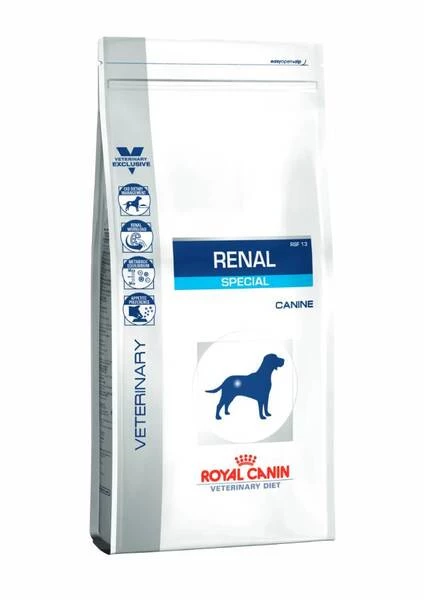 Royal Canin Renal Special Canine is a complete dietetic feed for dogs formulated to support renal function in the case of chronic or temporary renal insufficiency, through its low level of phosphorus and high-quality protein. Key Benefits CKD dietary management formulated to support renal function in the case of chronic kidney disease. It contains EPA and DHA, a complex of antioxidants and a low phosphorus level. Reduces renal workload, increased kidney workload may induce a uremic crisis. An adapted content of high-quality protein helps reduce kidney workload. Metabolic equilibrium, chronic kidney disease can lead to metabolic acidosis. Formulated with alkalinizing agents Appetite preference, designed aromatic profile helps answer to dog’s specific preference. Key Benefits CKD dietary management Reduces renal workload Metabolic equilibrium Appetite preference Ingredients COMPOSITION: rice, maize flour, animal fats, maize, dehydrated poultry protein, hydrolysed animal proteins, beet pulp, wheat gluten*, minerals, fish oil, vegetable fibres, soya oil, fatty acid salt, fructo-oligo-saccharides, psyllium husks and seeds, marigold extract (source of lutein).ADDITIVES (per kg): Nutritional additives: Vitamin A: 15700 IU, Vitamin D3: 1000 IU, E1 (Iron): 40 mg, E2 (Iodine): 4 mg, E4 (Copper): 12 mg, E5 (Manganese): 52 mg, E6 (Zinc): 154 mg, E8 (Selenium): 0.05 mg - Technological additives: Clinoptilolite of sedimentary origin:5 g - Preservatives - Antioxidants.ANALYTICAL CONSTITUENTS: Protein: 13.5% - Fat content: 16% - Crude ash: 4.3% - Crude fiber: 2.3% - Calcium: 0.6% - Phosphorus: 0.3% - Potassium: 0.6% - Sodium: 0.35% - Essential Fatty acids: 3.46% - EPA and DHA: 0.47% - Urine alkalinising substances: Potassium citrate - Calcium carbonate.*L.I.P.: Protein selected for its very high assimilation.